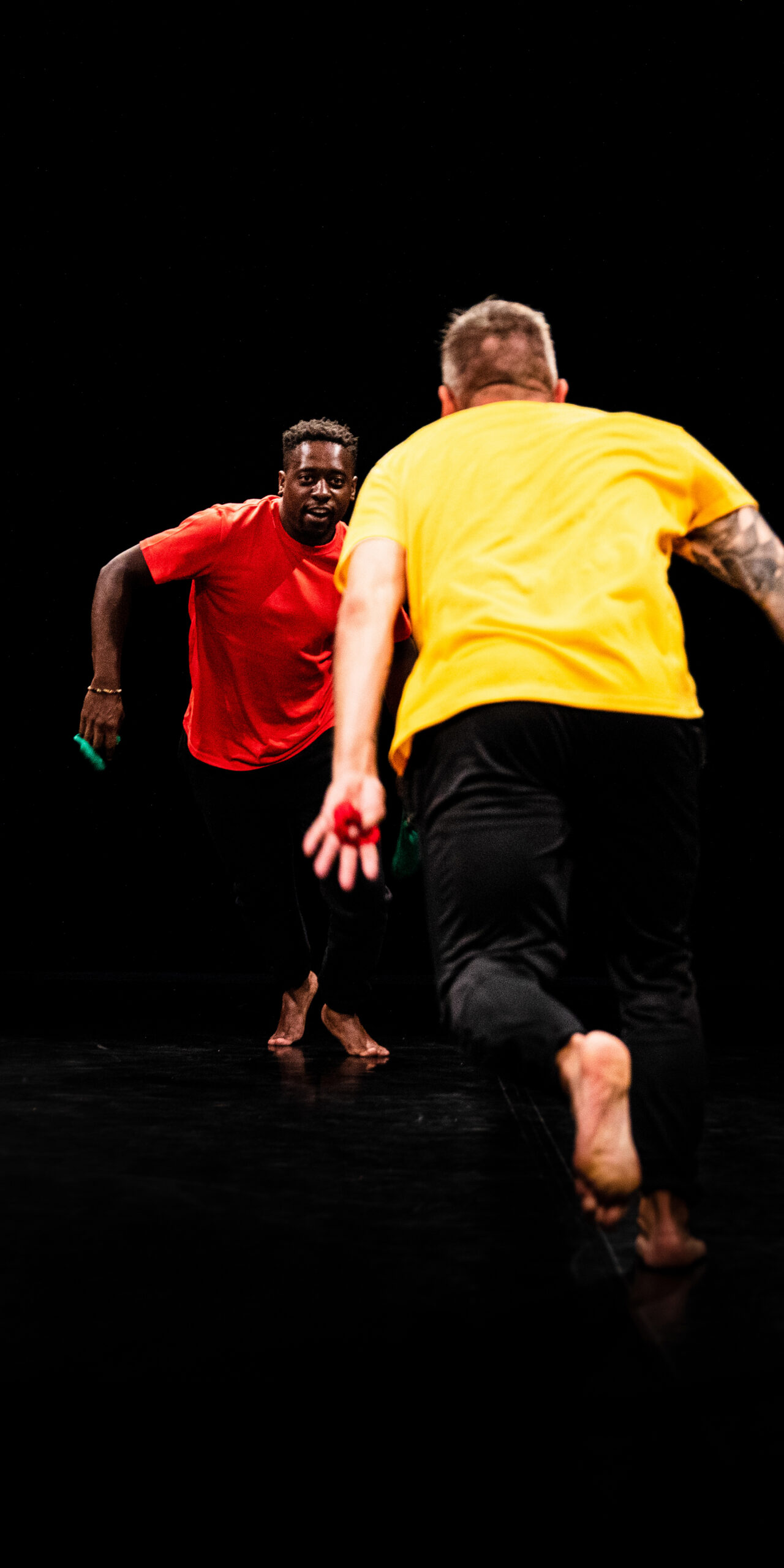 < Tous les articles Théâtre Découvrir les mOts premiers au CCAM Par Josh 7 octobre 2022 La programmation des spectacles jeune public vient d’ouvrir ses portes au CCAM. On est allé voir mOts premiers, proposition mêlant théâtre et danse. Une initiation à la découverte de l’autre et à la création d’un langage commun. Jeanne Paturel Posté/es sur les gradins du studio danse du CCAM, on observe l’aventure corporelle et vocale de deux êtres, dans une lenteur qui fait du bien. D’abord un seul artiste sur scène. Ce sont ses bruits qui nous interpellent. Ses bruitages vocaux, ceux de sa confrontation avec le bois, mais aussi les réactions des enfants présents, faisant partie intégrante du spectacle. Tout l’intérêt que ce spectacle soit jeune public prend forme. Le mot d’ordre est de découvrir, et chacun/e exprime le bruit de la découverte d’une manière différente. Puis rentre en jeu le deuxième artiste, et donc la confrontation avec l’autre. Comment l’appréhender, comment communiquer avec. On passe par différentes phases au fil du spectacle. Une confrontation visuelle qui semble fonctionner mais s’estompe vite. Une confrontation corporelle qui permet de jouer ensemble, pendant un temps. Une confrontation vocale où l’on tente des mots, et en plusieurs langues. Mais que faire si l’autre ne répond pas. Face à l’incompréhension on se met à gêner l’autre et on le pousse à se recroqueviller sur lui-même, à rester dans son coin. Il faut du temps. Jeanne Paturel Petit à petit, on arrive à se découvrir, et à s’identifier. Cela débloque la parole, l’attention à l’autre. Les mots font rebond, les corps et les envies aussi. On réussit à créer un langage commun. Pendant le spectacle, on se repose nos questions premières, on retombe à l’âge où l’on ne savait pas dire. Par les bruits, la danse, les rires, on voyage vers la compréhension de l’autre, montrant au jeune public les étapes de cette découverte. Le voir en présence d’enfants étend l’expérience, leurs interventions sonores donnant le ton. Venez l’apprécier au CCAM ce samedi et emmenez des enfants avec vous si possible. __ Un spectacle de la compagnie a k entrepôt.Interprètes (jeu et danse) : Harrison Mpaya & Jordan Malfoy Mise en scène : Laurance HenryDurée : 40min / Jeune Public Tarifs : Plein : 12€ / Tarif 1 : 10€ / Tarif 2 : 6€ / Tarif 3 : 4€ (étudiant/es, – de 26 ans, etc.). Plus d’infos ici. Le 8 octobre 2022 à 16h au CCAM. Réservez. Atelier en famille dès 4 ans gratuit le samedi matin, de 10h à 11h30. Toutes les informations dont vous pourriez avoir besoin sont ici. __ Josh À lire aussi Évènements Théâtre Notre bilan du Festival d’Avignon 24 Juil 2024 Le Festival d’Avignon a fermé ses portes ce 21 juillet. Il est temps de dresser le bilan. 35 spectacles dans le IN, 1666 dans le OFF, dans une période resserrée et avancée pour ne pas empiéter sur les JO. Un contexte forcément modifié par les échéances électorales (entre-deux-tours pendant la première semaine du Festival), qui Évènements Théâtre Léviathan de Lorraine de Sagazan — Festival d’Avignon 21 Juil 2024 Quelle claque. C’est le mot d’ordre à la sortie de Léviathan. Lorraine de Sagazan et Guillaume Poix ont façonné un spectacle-monstre, d’une beauté plastique mystique et d’une langue à la justesse cinglante. Le système judiciaire français est livré en comparution immédiate : on dévoile les vices d’un pouvoir malade et on établit les alternatives pour Évènements Théâtre Quichotte de Gwenaël Morin — Festival d’Avignon 20 Juil 2024 Il arrive des spectacles où la déception l’emporte sur l’amour que l’on porte à un·e artiste. Le théâtre de Gwenaël Morin a beau être l’un des plus intéressants du siècle, il n’a pas réussi à surmonter Don Quichotte. Jeanne Balibar et Marie-Noëlle y sont magiques, mais elles manquent cruellement de soutien. Chronique d’un metteur en À la loupeCartes postalesÉvènementsInterviewsLittératurePlaylists