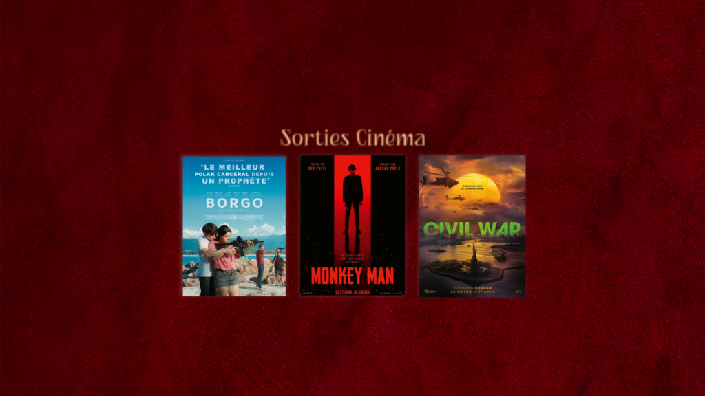 Films de la semaine / 17 avril Publié le 17 avril 2024 (23 avril 2024) par Première Pluie Parmi tous les films sortis en salle le 17 avril, voici ceux qu’on vous recommande de ne pas rater dans les salles indépendantes les plus proches de chez vous. Au programme : Hafsia Herzi est gardienne de prison, Dev Patel se venge de ses ennemis et la guerre civile éclate aux USA. Borgo, de Stéphane
